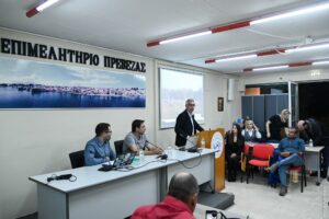 Mr. Panagiotis Katsaris, representative of ELGO–DIMITRA, emphasized that the olive oils of the region possess natural characteristics that make them a model of quality and authenticity. Subsequently, Dr. Georgios Giannopoulos, Researcher – Agronomist, presented the protocol for implementing environmentally friendly techniques in olive groves and olive mills. The event was coordinated by the President of the Chamber of Preveza, Mr. Ioannis Bouris, who gave a brief overview of the project’s progress and the objectives for the upcoming period.