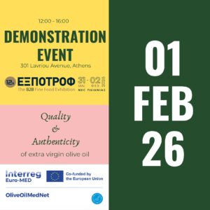 Our project partner, Preveza Chamber, will be participating in EXPOtrof, hosted at MEC Paianias from 31/1–2/2, showcasing the OliveOilMedNet project and its impact on the Mediterranean olive oil sector.